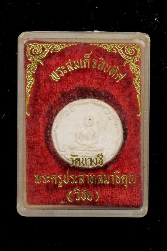วัดใจ นิยม มีกำไล พระสมเด็จหลังพระสิวลี หลวงพ่อกวย วัดโฆสิตาราม พิมพ์ใหญ่ (เอวเล็ก) เนื้อผงปี 2515 มีบัตรรับรอง |