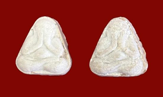 พระของขวัญ วัดปากน้ำ รุ่น4(พระธรรมขันธ์) พิมพ์สามเหลี่ยม เนื้อผง ปี2514 |