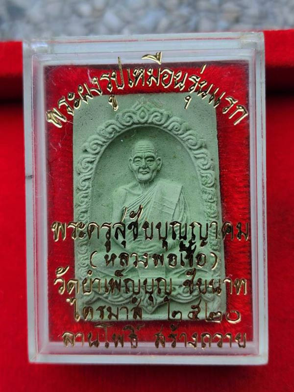 พระพิมพ์หลวงพ่อทาบ หลังกาบหมาก วัดกระบกขึ้นผึ้ง จังหวัดระยอง ปี05 พระสภาพสวย หน้าตาคมชัด ติดสีผึ้งเขียวด้านหน้า |