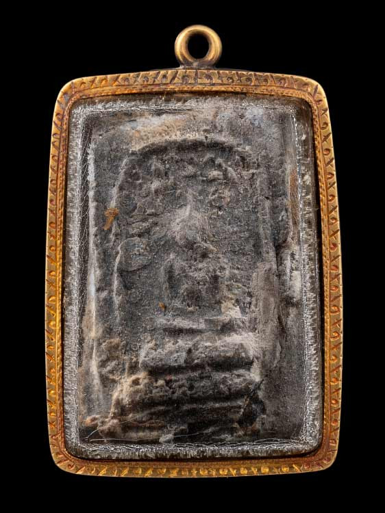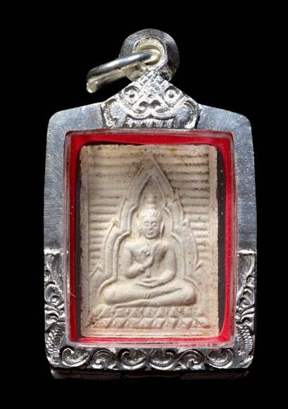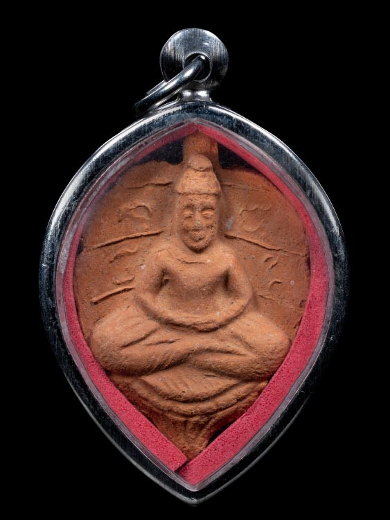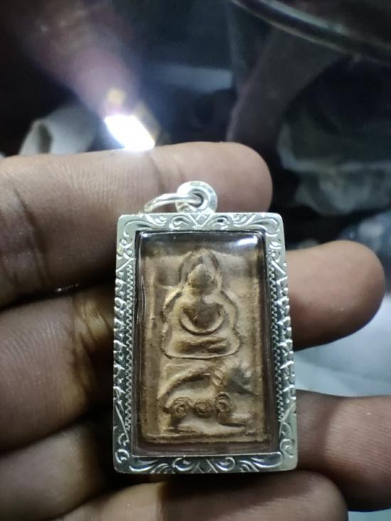 พระพุทธ หลวงพ่อผาด วัดดงตาล พิมพ์ทรงเสือ เนื้อดิน จ.ลพบุรี เลี่ยมเงิน |