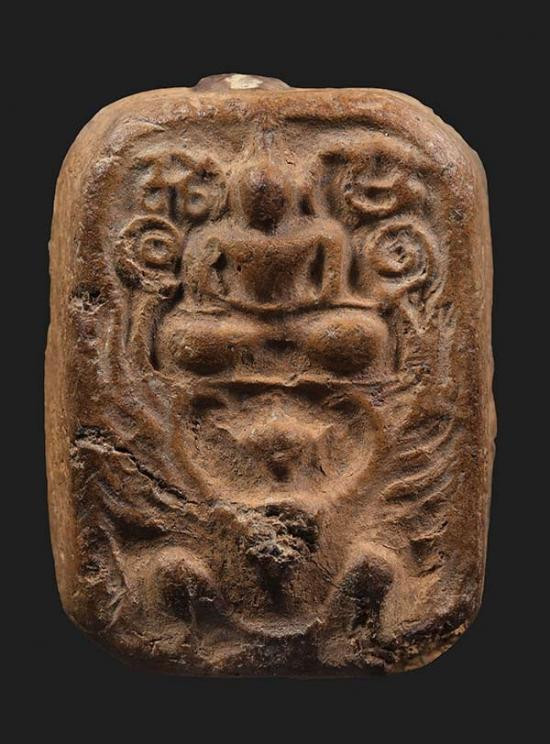 เคาะเดียวพระพุทธ หลวงพ่อขัน วัดนกกระจาบ พิมพ์สามเหลี่ยม เนื้อดิน จ.พระนครศรีอยุธยา |