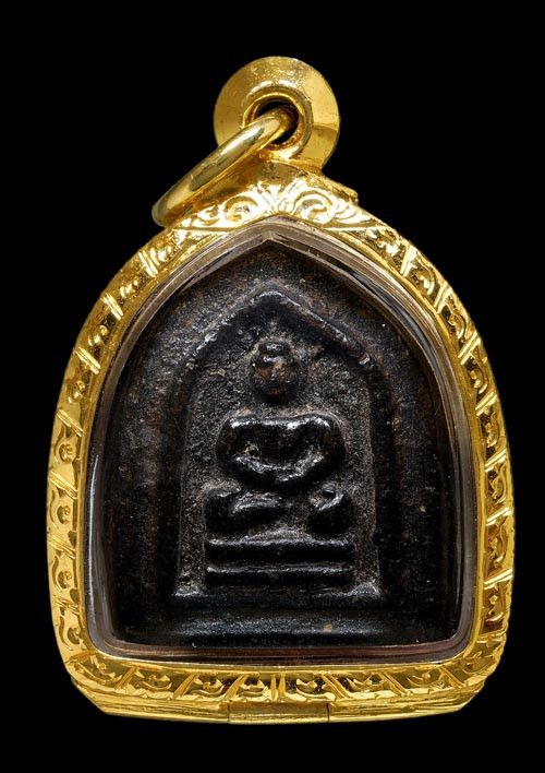 หลวงพ่อทองสุข วัดสะพานสูง พิมพ์สตางค์ห้า เนื้อผงคลุกรัก ปี2495-2504 |