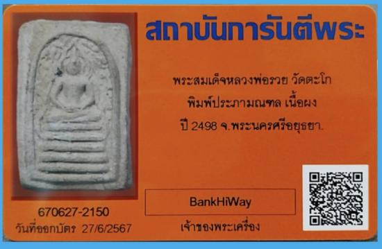 พระสมเด็จ หลวงพ่อรวย วัดตะโก พิมพ์ประภามณทล 2498 |