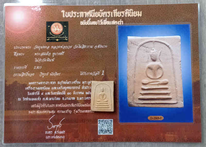 พระสมเด็จ พิมพ์คะแนน ปี 2506 เนื้อผง วัดประสาทฯ พร้อมบัตร |