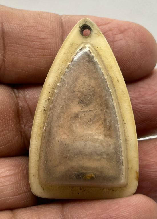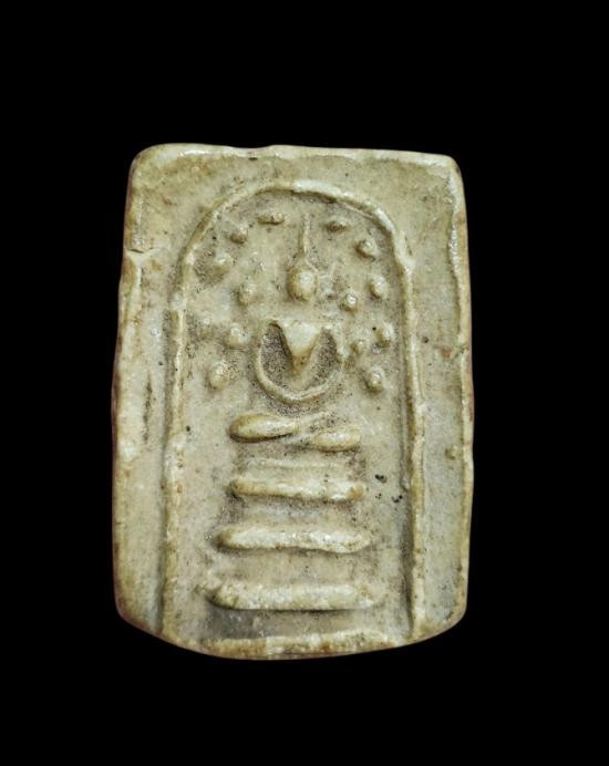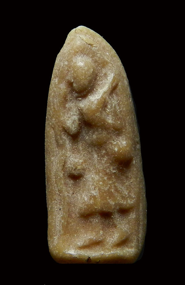วัดใจ พระผงของขวัญ วัดเกาะจันทร์ ปี 2497 ด้านหลังมีรอยจารยันต์นะชัดเจน พระรุ่นนี้ผสมมวลสารเก่าของพระผงวัดปากน้ำรุ่นแรก |