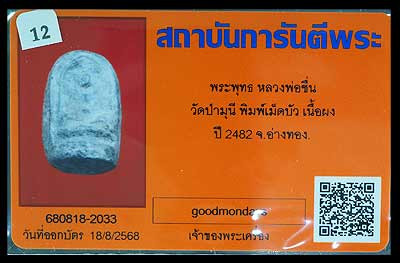 พระรอด วัดพระสิงห์ เนื้อดิน(เขียว) จ.เชียงใหม่ ปี 2496 พร้อมบัตรรับรอง ครับ |