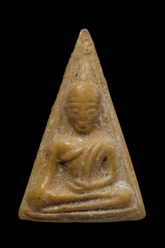 พระหลวงพ่อปาน วัดบางนมโค พิมพ์ทรงไก่หางสี่เส้นบัวสองชั้น เนื้อดิน ปี 2460 จ.พระนครศรีอยุธยา (สภาพใช้) ยังมีผงอยู่ เลี่ยมทอง พร้อมบัตรรับประกัน |