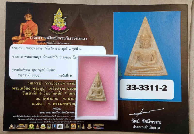 (เคาะแดง1900) +บัตรสมาคม นางพญา หลวงพ่อกวย เนื้อผงน้ำมัน |