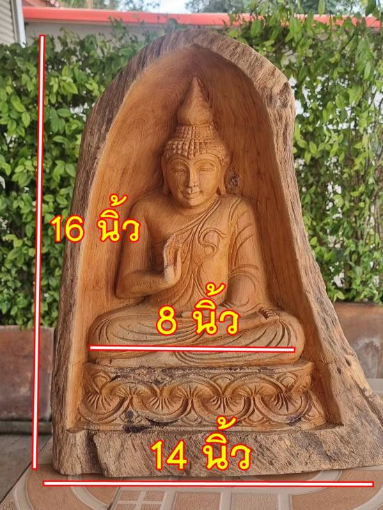 พระปางประทานพร แกะสลักจากแผ่นปีกไม้มงคล ขนาดใหญ่ |