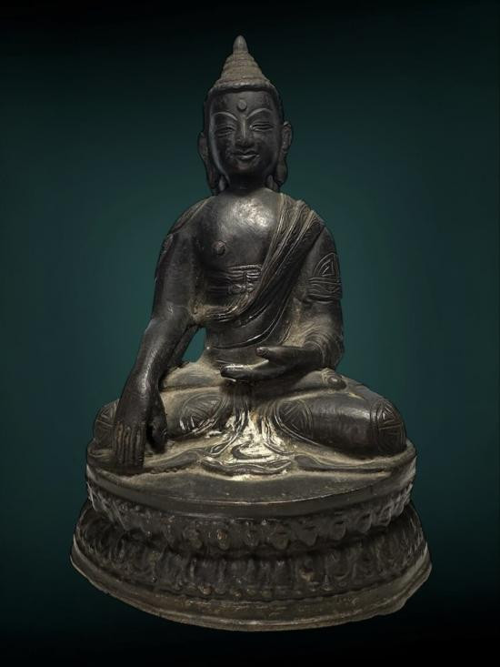 100 / พระบูชาปางประทานพรบัวจีน เนื้อโลหะเข้มๆเก่ามีอายุ ก้นดินไทย หน้าตัก 5 นิ้ว สวยเดิมผิวหิ้งๆครับ |