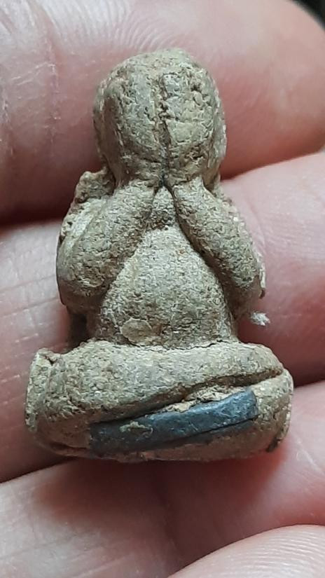 พระปิดตาเนื้อผง หลังยันต์ก้นฝั่งตะกรุด ไม่ทราบที่ครับ |