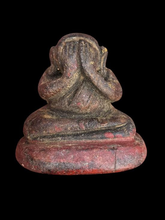 พระปิดตาไม่ทราบที่มีจารด้านหลัง |