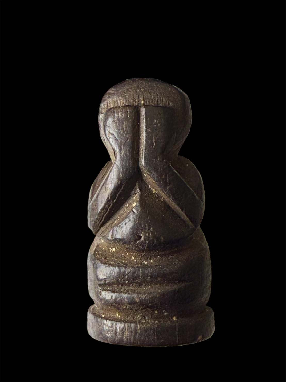 พระปิดตา เนื้อไม้แกะ ก้นอุดผงมวลสารเนื้อแห้งๆเก่าๆ ไม่ทราบที่ |