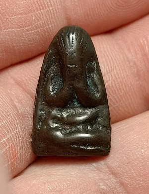 พระปิดตาพิมพ์ห้าเหลี่ยมองค์เล็ก ด้านหลังยันต์ ไม่ทราบที่ครับ |