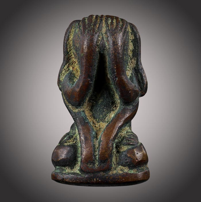 (วัดใจ)พระปิดตาหล่อโบราณ พิมพ์หูกระต่าย(ไม่ทราบที่)เนื้อโลหะผสม สภาพเก่ามีอายุ |