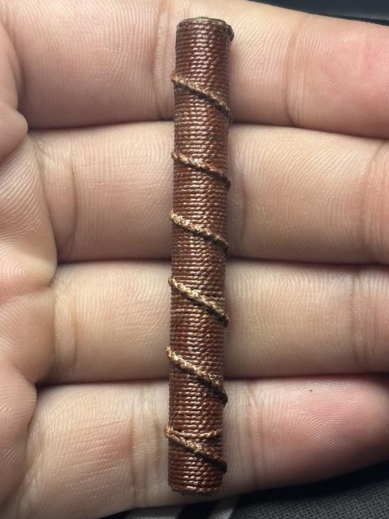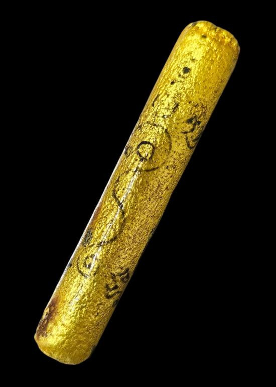 ( 2 ) ตะกรุดถักเชือก ลงรัก ปิดทอง ร้อยเชือกเจ็ดสี ทำบุญมาจำชื่อวัดที่สร้างไม่ได้ สภาพพระตามรูปที่ลงทุกประการ (ขนาดยาวประมาณ 5 นิ้ว) |