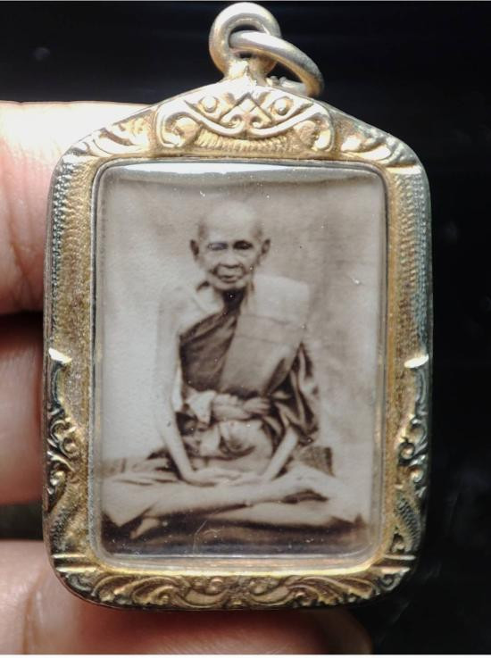 ล็อกเก็ตรูปหลวงพ่อสด วัดปากน้ำ ด้านหน้าตอกโค๊ต หลังฝังล็อคเก็ต จีวรและยันต์ |