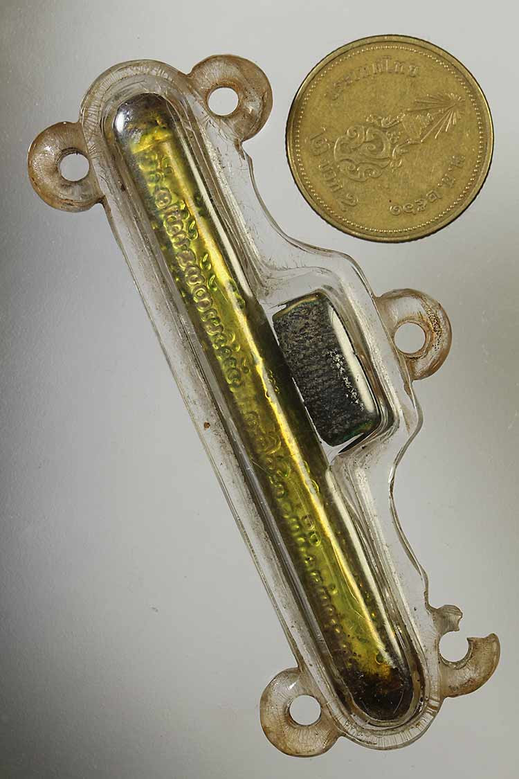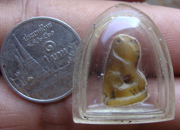 พระกลีบบัวหลังยันต์ เนื้อพลาสติก ไม่ทราบที่ครับ |