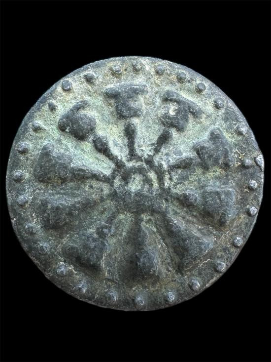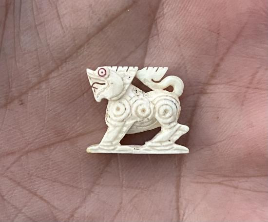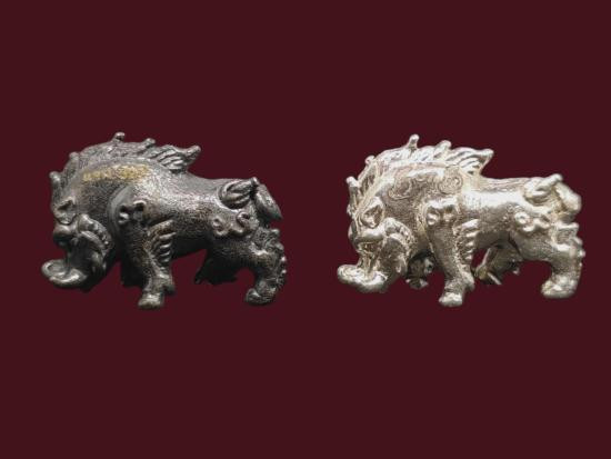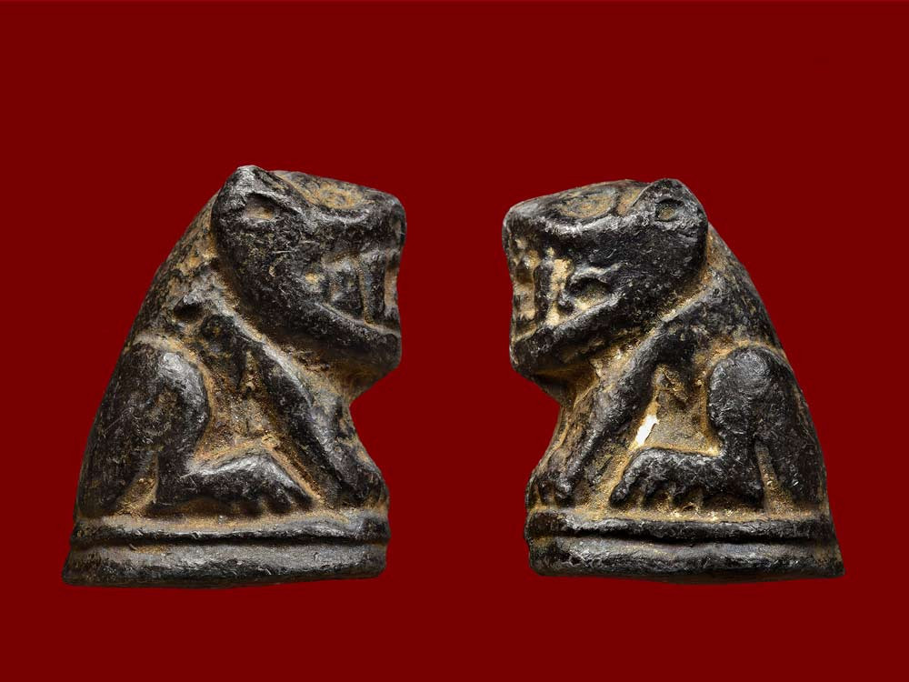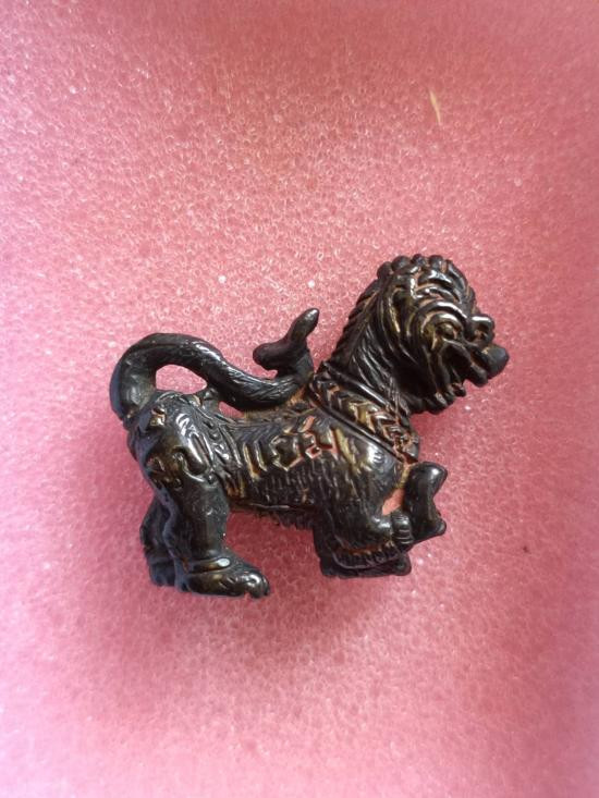 สิงห์เนื้อตะกั่ว ไม่ทราบที่ครับ ขนาดกว้าง1.5ซม. สูง2ซม. |