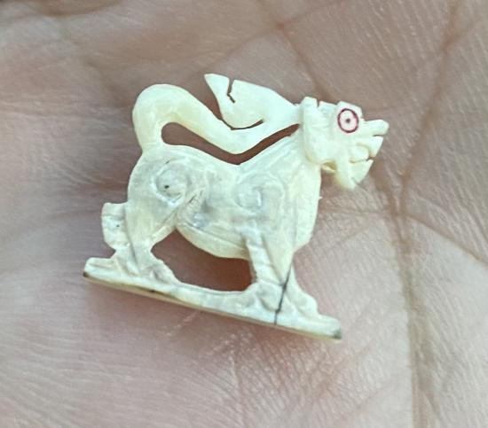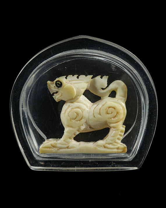 จิ้งจก งาแกะ จารอักขระ เลี่ยมเก่า ไม่ทราบที่ |