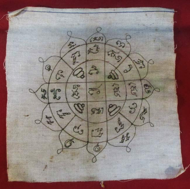 ผ้ายันต์ ไม่ทราบที่ จารยันต์ด้วยมือ ยันต์สวย ครับ (พระบ้าน ครับ) |