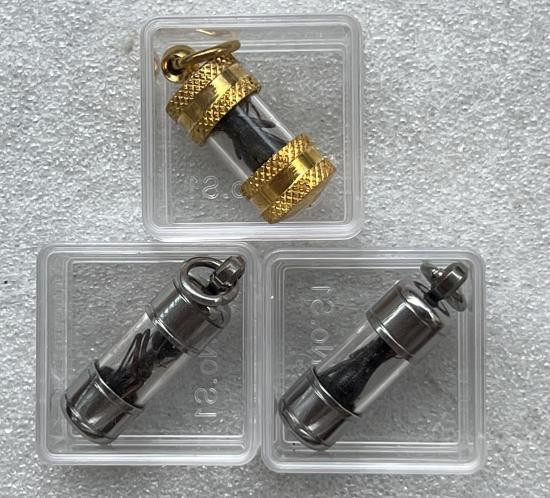 วัดใจ**เครื่องราง ลูกสะกด ฝังตะกรุดทองแดงเก่า ไม่ทราบที่....ตามสภาพครับ |