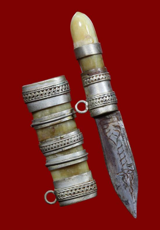 วัดใจ**เครื่องราง หินหยกโบราณเก่า หุ้มเงินแกะลายหัวท้าย....สวยครับ |