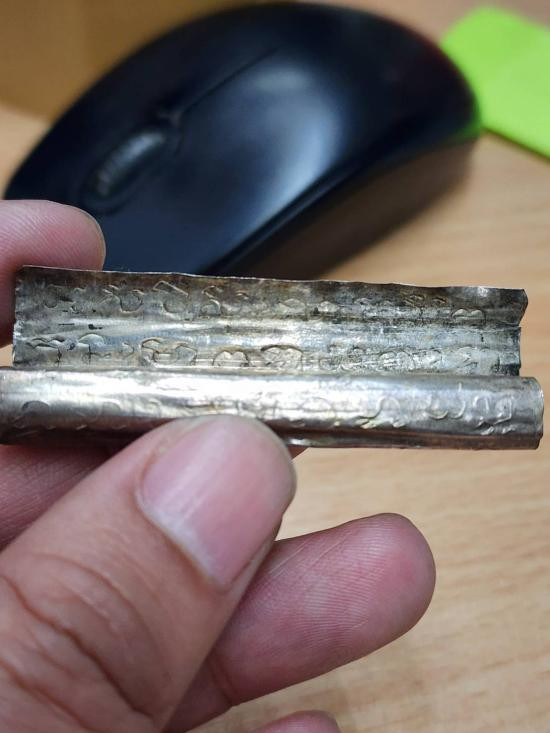 แผ่นชนวนจารยันต์ทั้ง2หน้าจารมือตัวยันต์ชัดเจนแบบหลวงปู่รอด แต่ไม่ยัดวัดครับ ขนาดประมาณ2.5นิ้ว แท้ไม่ทราบที่ ทราบเชิญครับ |