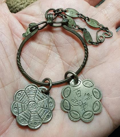 เครื่องรางจีนโป๊ยข่วยเนื้อเงินห่วงเชื่อม มาพร้อม พวงกุญแจโบราณครบชุด