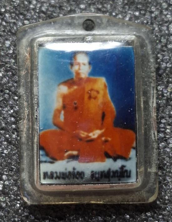 ภาพหลวงพ่อกวย ไม่ทราบรุ่นปีและที่จัดสร้าง มีตอกเลขที่ภาพ เข้าเลี่ยมกันน้ำไว้แล้ว