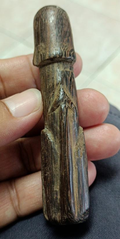 ปลัดขิกแกะจากไม้ จารยันต์รอบตัว เลียมเงิน ไม่ทราบวัด งานสวยเ ก่า !!