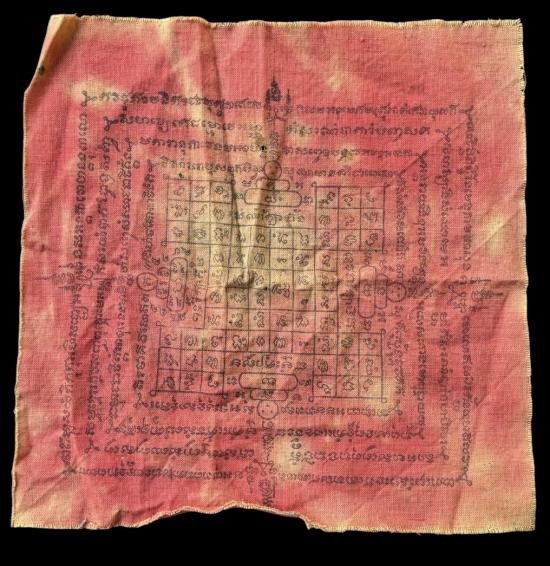 ผ้ายันต์เขียนมือ เก่าแท้ไม่ทราบที่ สภาพสวยเดิม |