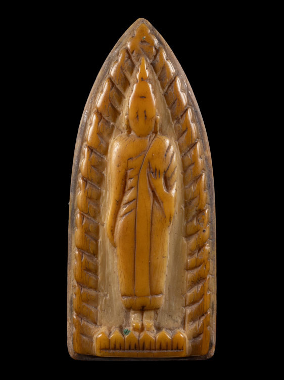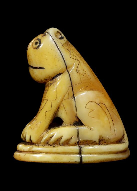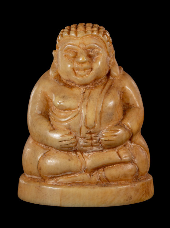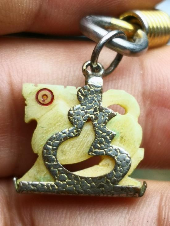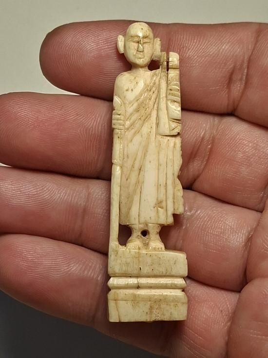 งาแกะหนุมานหน้าโขนพิมพิ์นั่งพนมมือวันทา ขนาดสูง1.5นิ้ว เก่าๆงามีอายุ ศิลป์สวยๆ ไม่ทราบที่ |