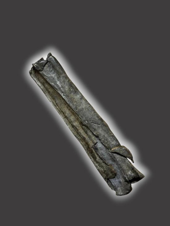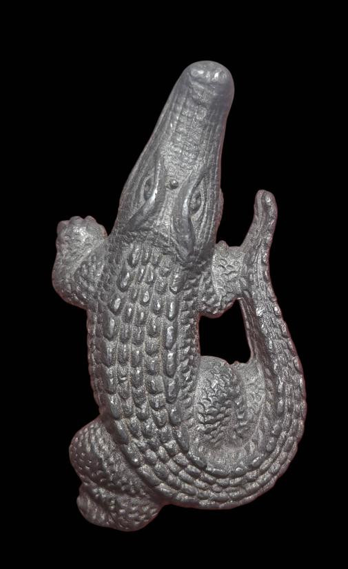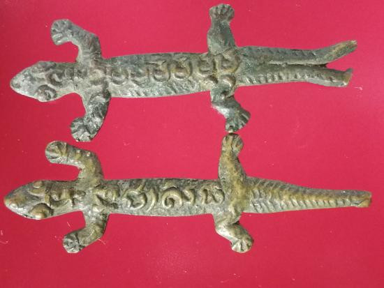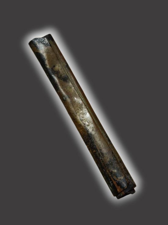 ตะกรุดลายจรเข้เนื้อตะกั่วเก่ายาว4.8นิ้วโต1.2เซนครับ เก่าไม่รู้ที่เชือกแห้งกรอบครับ |