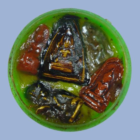 ตลับสีผึ้ง ด้านในของขลังหลายชิ้น ไม่รู้ที่ 100 แดงครับ |