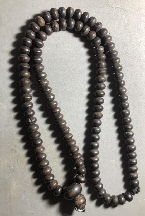 สร้อยประคำไม้แกะจุ่มรักเก่ามากอายุร้อยปี ไม่ทราบที่ |