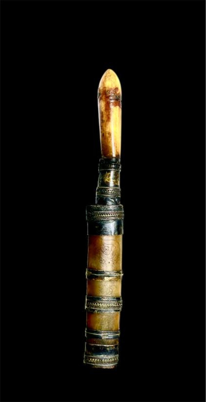 ตะกรุด เนื้อตะกั่ว ยาว 3นิ้ว ไม่ทราบที่ครับ |