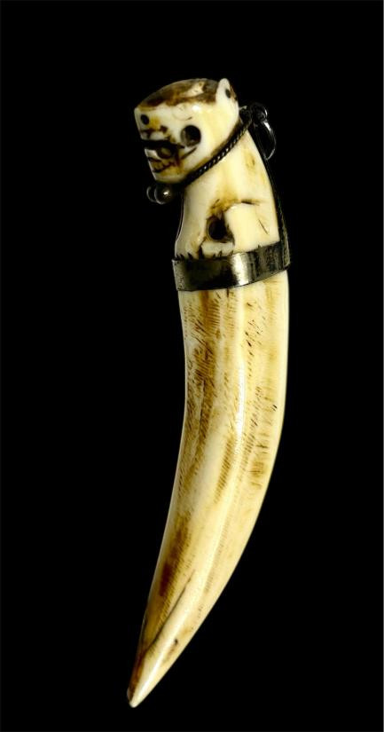 เขี้ยวเสือแกะ [ งาช้างแกะเสือแท้เก่าฉ่ำ ] ขนาด 6 ซม.โต 1.5 ซม.งาเก่าแกะศิลป์สวยมาก ไม่ทราบที่ครับ |