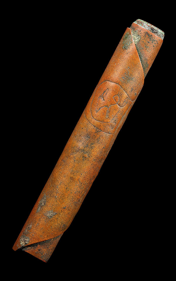 ตะกรุดโทน เนื้อทองแดง หุ้มหลอดยาง ๕ นิ้ว |