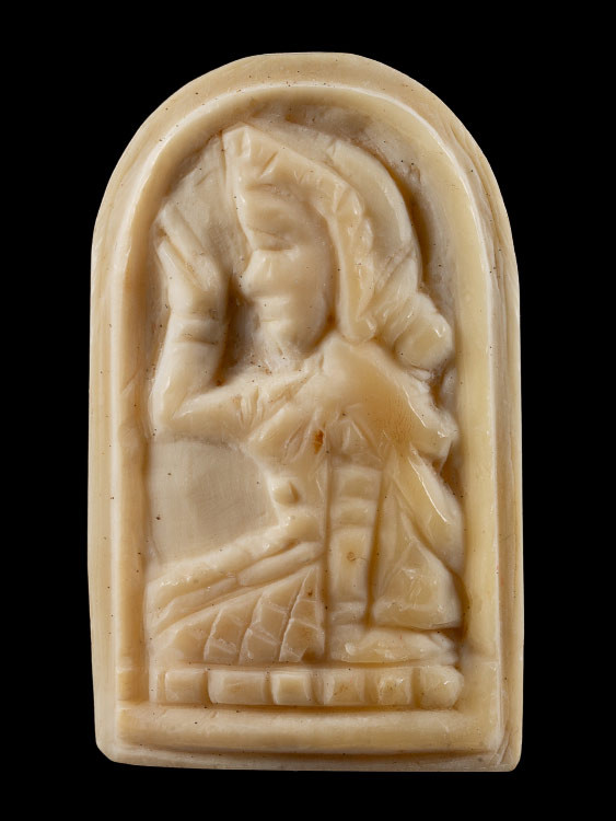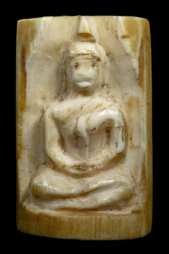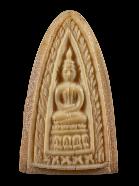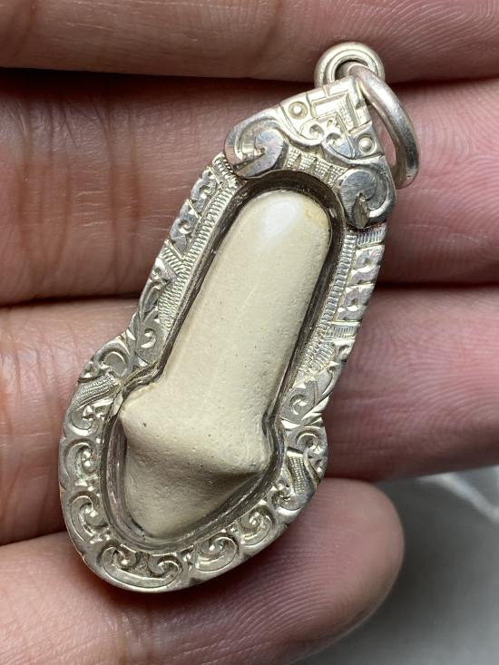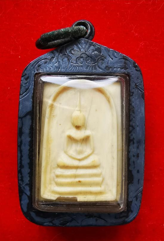 พระสมเด็จงาแกะจับขอบเงินครับขนาดกว้าง1.6ซม.Xสูง2.5ซม.ครับ |