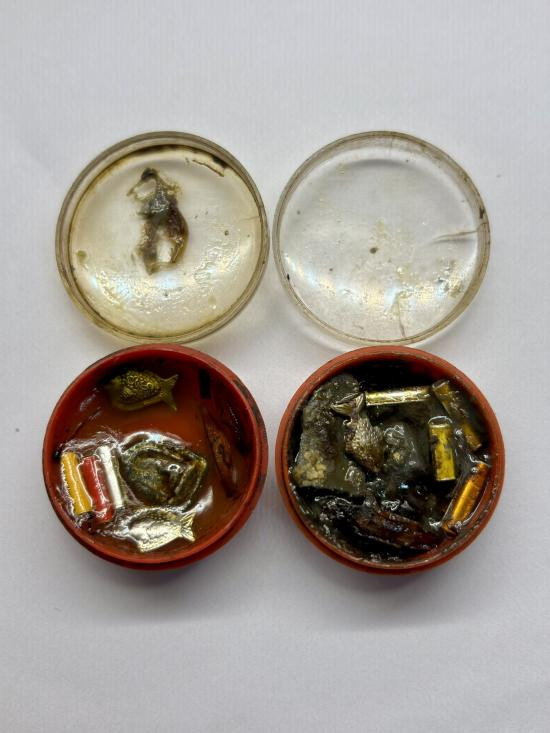 รับ2องค์ เคาะเดียว40แดง ตลับสีผึ้งไม่ทราบที่ บางคนตีเป็นตลับสีผึ้งมหาเสน่ห์ ตลับเลข1 ตลับพร้อมฝา หลวงพ่อกวย วัดโฆสิตาราม จ.ชัยนาท ปี 21 บ้างคนตีเป็น สีผึ้งยุคต้น หลวงพ่อสุด วัดกาหลง จ.สมุทรสาคร |