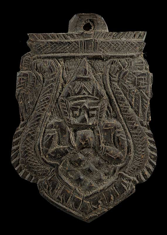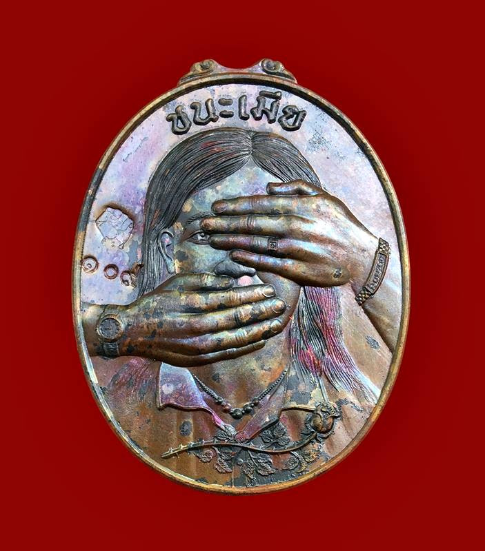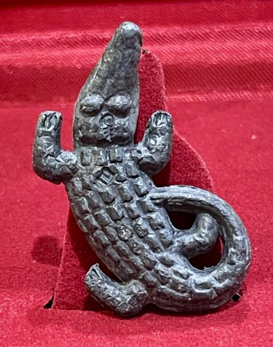 สิงห์เนื้อตะกั่ว ไม่ทราบที่ครับ ขนาดกว้าง1.5ซม. สูง2ซม. |