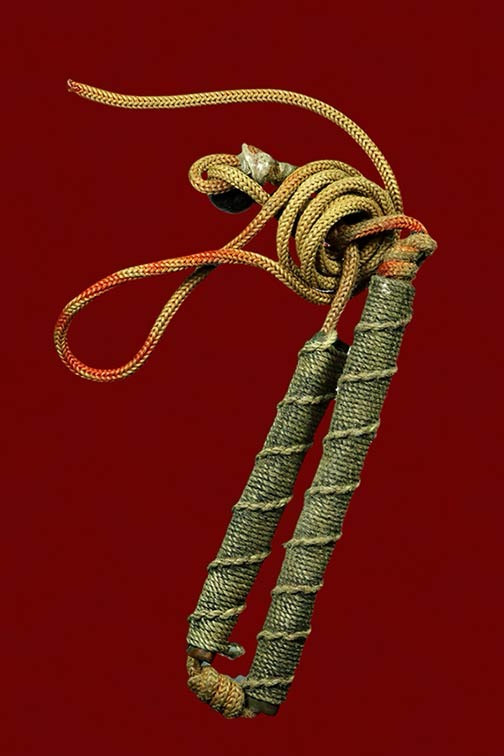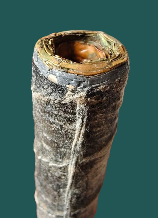 ตะกรุดสายถักเชือกเขียว เนื้อฝาบาตรถัดเชือก ลูกคั่นเนื้อตะกั่ว ,เนื้อครั่งพุทรา สภาพสวย ยาว 36 นิ้ว อายุกว่า 30 ปี เคาะแรก |