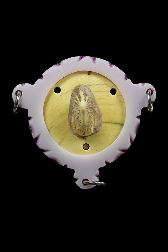 เบี้ยแก้เก่า มีจารมือ มีตะกรุดด้านหลัง ไม่ทราบที่ ไม่รู้วัด ถักเชือกพร้อมบูชา |
