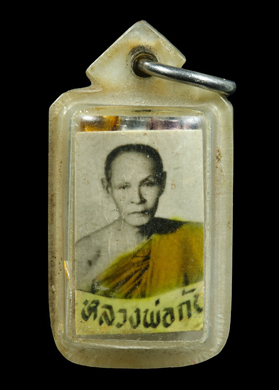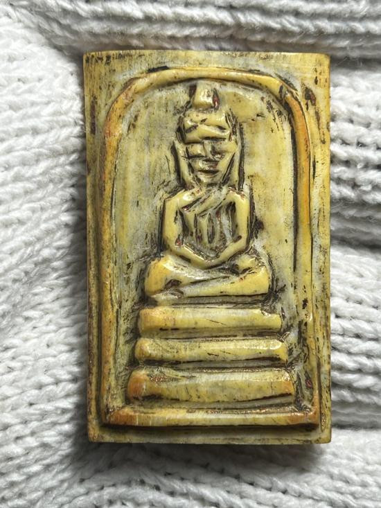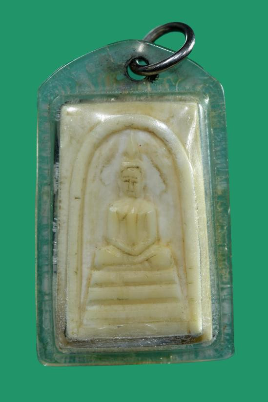 พระกลีบบัวหลังยันต์ เนื้อพลาสติก ไม่ทราบที่ครับ |
