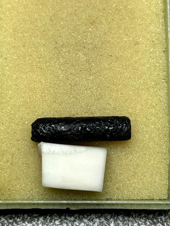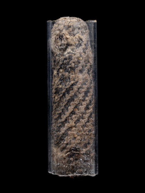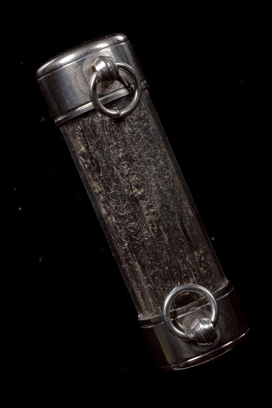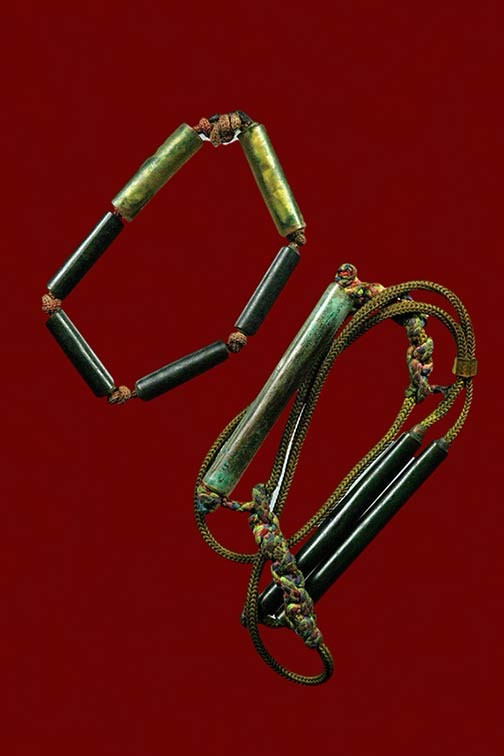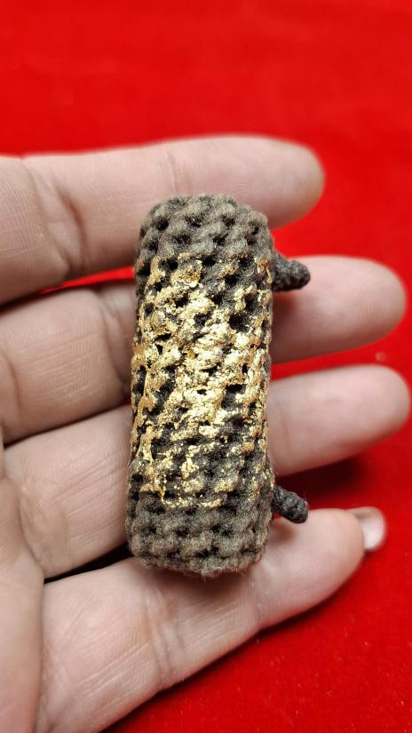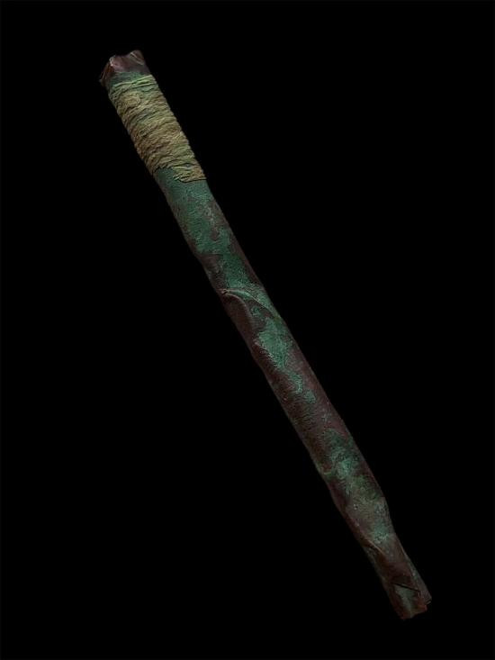 ตระกรุดทองแดงยาวประมาน 4 นิ้ว เก่ามากจนเชือกขาดแห้งเป็นไม้ เนื้อทองแดงเก่าจะออกเป็นสัมฤทธิ์เลยครับ |