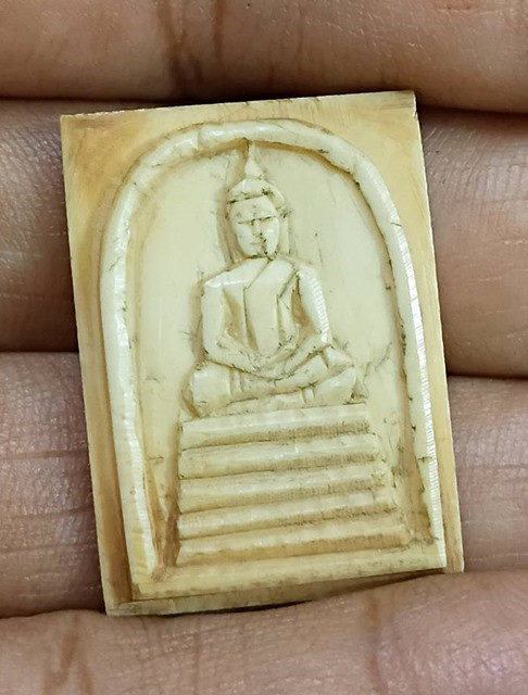 วัดใจ แบ่งปันพระแท้ พระพุทธปางสมาธิ (ขนาดปรกใบมะขาม) งาแกะ เก่าไม่ทราบที่ งานแกะมือ มีรอยมีด ศิลปะการแกะหน้าหวานๆ เก่ามีอายุ |