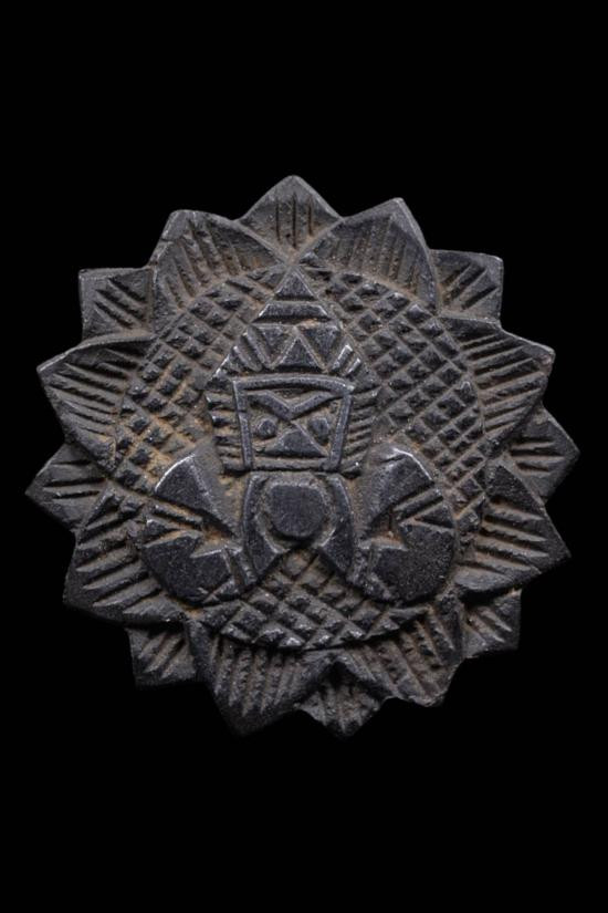 สิงห์แกะศิลป์โบราณ ตาฝังพลอย เก่าเข้าเลี่ยมกันน้ำไว้แล้ว ใต้ฐานมีจาร(ไม่ทราบเป็นงาหรือเขาหรือกระดูก) |