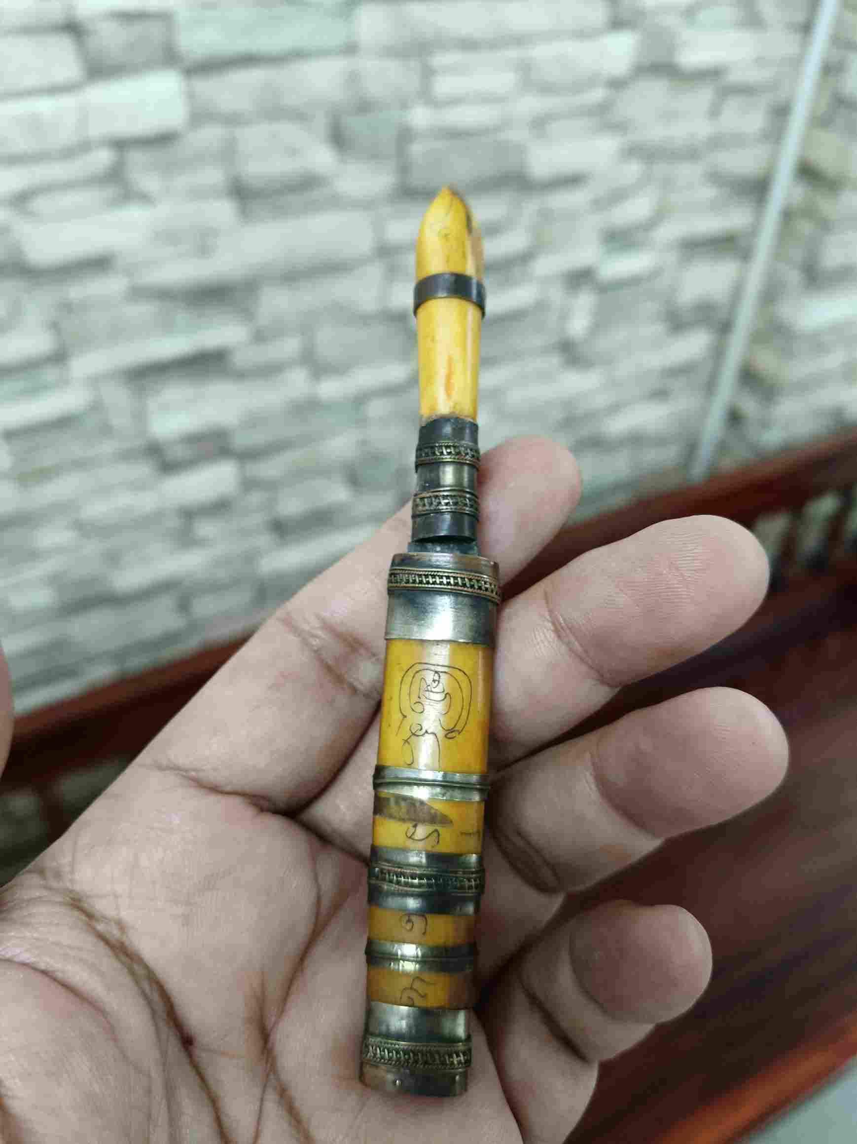 มีดเทพศาสตรา มีดปากกา ไม่ทราบคณาจารย์ ด้ามงาฝักงา รัดปลอกเงิน รุ่นพิเศษ ตอกโค๊ต ตอก 80 สภาพสวย !! |