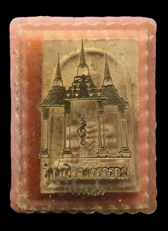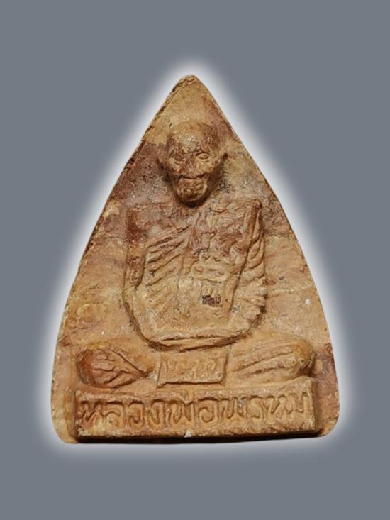 A7330.พระงบน้ำอ้อยเนื้อผง หลังรูปเหมือนหลวงปู่เจริญ วัดธัญญวารี เคาะเดียวเเดง